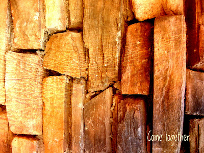The blend with text photo is a blend with that same stone walkway and a photo I took of my leather purse. I wanted to show a comparison between hard and soft. I chose to use "Come together" for my text to portray that opposites can come together and work beautifully.